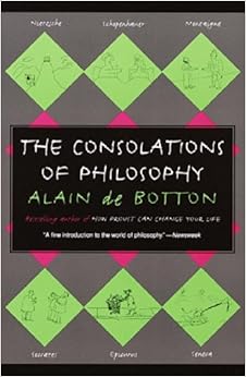 Somehow, I managed to get through high school and college without ever seriously reading any of the great Western philosophers. The Consolations of Philosophy is an excellent introduction and quick (I mean,QUICK) overview of six of these men. The deadwhitemales discussed are Socrates, Epicurus, Seneca, Montaigne, Schopenhauer, and Nietzsche. The discussion is lively and thought-provoking--and amusingly illustrated. This book would serve as an excellent secondary text for an introduction to philosophy course. Even the most jaded undergraduate will want to learn more about the teachings of the philosophers covered. I found the chapters on Seneca ("Consolation for Frustration"), Montaigne ("Consolation for Inadequacy"), and Nietzsche ("Consolation for Difficulties") the most engaging and challenging. De Botton's writing and thinking are fresh and remind me, for some reason, of the cultural essays of Susan Bordo (and Camille Paglia in her more reasonable moments).