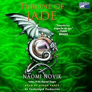 There are parts of this book I really enjoyed and then there are parts of this book that totally bored me. Naomi Novak’s writing is always beautiful and detailed and had I not read Uprooted before starting this series I might not have had such high expectations but alas I did and so I wanted something more.Throne of Jade is a lot more about cultural differences, social acceptances and politicking. Unlike His Majesty’s Dragon which involved getting to know the dragon culture and being in quite a few battles, much of the time in Throne of Jade is spent traveling to China and the focus is more on the bond of loyalty between Teremaire and Laurence. There are a few battles in this book but a lot of the action comes at the very beginning and the very end. Those were my favorite parts.The Sea voyage is the part that became a bit tedious for me. Teremaire spent much of it brooding and there were many different discussions about slavery, dragon rights and why things are done a certain way in England. Teremaire seemed to have a lot of very specific ideas about all of it. There was some extraneous information about what everyone was eating including Teremaire and a funny bit when he caught a cold but it turned a little bit into what to feed a dragon for awhile and I started wondering when we would ever get back to the crux of the story.I did appreciate how things changed once settled in China and it was interesting to see how the Chinese incorporated dragons into their everyday society and how that changes both Laurence and Teremaire’s opinions of the practices of raising and keeping Dragons in England. It will be interesting to see if anything comes of that. I also loved seeing the tale of Mulan weaved in with a dragon twist to it.