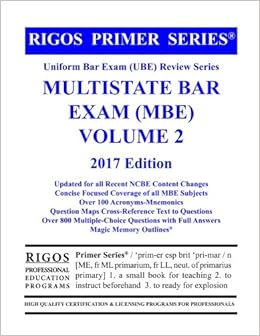 Rigos Primer Series Uniform Bar Exam (UBE) Review Series Multistate Essay Exam (MEE): 2013-14 Edition (Rigos UBE Review Series) Rigos Primer Series Uniform Bar Exam (UBE) Multistate Bar Exam (MBE) Volume 2: 2017 Edition Rigos Primer Series Uniform Bar Exam (UBE) Review Multistate Bar Exam (MBE) Volume 1: 2017 Edition Rigos Primer Series Uniform Bar Exam (UBE) Review Multistate Professional Responsibility Exam (MPRE): 2017 Edition Rigos Primer Series Uniform Bar Exam (UBE) Review Multistate Essay Exam (MEE): 2017 Edition Rigos Primer Series Uniform Bar Exam (UBE) Review Series Multistate Essay Exam: 2016 Edition Rigos Primer Series Uniform Bar Exam (UBE) Review Series MPRE: 2016 Edition PMBR MBE Multistate Bar Exam Practice & Strategies Strategies & Tactics for the MBE (Multistate Bar Exam) Passing the Uniform Bar Exam: Outlines and Cases to Help You Pass the Bar in New York and Twenty-Three Other States (Professional Examination Success Guides) (Volume 1) The Bar Exam Mind Bar Exam Journal: Guided Writing Exercises to Help You Pass the Bar Exam Civil Procedure MBE Practice Questions: Simulated MBE Practice Questions Testing Civil Procedure with Answers and Explanations The Multistate Goat: The Essential Book of MBE Practice Questions Strategies & Tactics for the FINZ Multistate Method (Emmanuel Bar Review) (Emanuel Bar Review) Sterling Bar Exam Review MBE Essentials: Governing Law Outlines (Sterling Test Prep) Mastering Multiple Choice for Federal Civil Procedure MBE Bar Prep and 1L Exam Prep, 2d (Career Guides) Scoring High on Bar Exam Essays: In-Depth Strategies and Essay-Writing That Bar Review Courses Don't Offer, with 80 Actual State Bar Exams Questions a Strategies & Tactics for the MBE 2, Second Edition (Emanuel Bar Review Series) Multistate Bar Exam Flash Cards Strategies and Tactics for the MPRE (Multistate Professional Responsibility Exam) (Emanuel Bar Review)