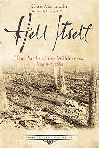 The Battle of the Wilderness has been getting some serious attention recently, so I was happy to see that Chris Mackowski wrote a book from the Emerging Civil War Series about it. Hell Itself encompasses May 5 -7 and does what most other books from this series has done. They give an excellent overview of the battle with great information, along with readable maps and clear driving instructions around the battlefield. This series has been invaluable and Hell Itself is no exception. Mackowski brings the same academic outlook to the battle which he has done in his previous works and all other works in the Emerging Civil War series. Chris Mackowski is the editor-in-chief of Emerging Civil War along with being the writing profession in the School of Journalism and Mass Communication at Saint Bonaventure University. He is a former historian with the Fredericksburg and Spotsylvania National Military Park, which includes the Wilderness battlefield, and is the historian-in-residence at Stevenson Ridge. He is the author and co-author of twelve Civil War books from both the Emerging Civil War series and others including: Seizing Destiny, and Chancellorsville’s Forgotten Front. Also in Hell Itself are appendices written by other contributing authors of Emerging Civil War. Hell Itself works on two fronts, as all other Emerging Civil War books have done. Not only is it informative, but it also offers a driving schedule for those who want to tour the battlefield. The strength of this series is that tourists can take them along when they go to these places. Each page is accompanied by either a picture of the battlefield or a picture from the war which gives readers a more visual idea of what happened here.
