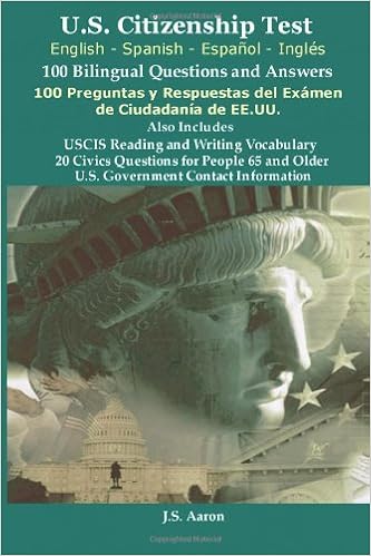 *U.S.Citizenship Test (English and Spanish - Español y Inglés) 100 Bilingual Questions and Answers 100 Preguntas y respuestas del exámen de la ciudadanía (Spanish Edition) Spanish-English English-Spanish Medical Dictionary: Diccionario Médico Español-Inglés Inglés-Español (Spanish to English/ English to Spanish Medical Dictionary) (Spanish Edition) Cómo acertar todas las preguntas sobre Gestión del Valor Ganado en el Examen PMP®: (+50 Preguntas Tipo Examen PMP® con Soluciones sobre la Gestión del ... del Examen PMP nº 1) (Spanish Edition) U.S. Citizenship Test: 100 Bilingual Questions and Answers Vietnamese - English: 100 câu hoi và câu tra loi de chuan bi cho ky thi quoc tich My (U.S. Citizenship Test Questions) (Vietnamese Edition) Piñatas and Paper Flowers: Holidays of the Americas in English and Spanish / Piñatas y flores de papel: Fiestas de las Américas en inglés y español (Spanish and English Edition) I Love to Help Me encanta ayudar (spanish bilingual childrens books, libros en español para niños, spanish kids books ages 4-8) (English Spanish Bilingual Edition) (Spanish Edition) U.S. Citizenship Test (Chinese - English) 100 Bilingual Questions and Answers (Chinese Edition) Inglés [English]: El Secreto Para Hablar Inglés Como un Nativo en 6 Meses Para Personas Ocupadas [The Secret to Speaking English Like a Native in Six Months for Busy People] Conversaciones en Inglés: La Rutina Diaria en Inglés [English Conversation: The Daily Routine in English] New Citizenship Basics Textbook, DVD, and Audio CD U.S. Naturalization Test Study Guide 100 Civics Questions with New & Updated N-400 Application Questions: Pass the Citizenship Interview with the New Textbook, CD, and DVD Cómo Aprender Español, Francés, Inglés, Alemán, Japonés, Portugués, Cualquier Idioma en 30 Días [How to Learn English, French, Spanish, German, Japanese, Portuguese, or Any Language in 30 Days] Pass The New Citizenship Test Questions And Answers: 100 Civics Questions In Flash Card Format U.S. Citizenship Test (English Edition) 100 Questions and Answers: Includes a Flash Card Format for Easy Practice Study Guide for the US Citizenship Test in English and Russian: Updated March 2016 (Study Guides for the US Citizenship Test) Study Guide for the US Citizenship Test in English and Tagalog: Updated March 2016 (Study Guides for US Citizenship Test) (Volume 1) Your U.S. Citizenship Guide: What You Need to Know to Pass Your U.S. Citizenship Test With Companion CD-ROM(SPANISH) (Spanish Edition) I Love My Dad (English Korean bilingual, Korean children books, Korean kids books, ESL for Koreans) korean english books, bilingual children, ESL for kids (English Korean Bilingual Collection) I Love My Mom (english korean books for kids, Korean bilingual books,ESL for kids, korean kids books, korean english bilingual,Korean childrens books) (English Korean Bilingual Collection) I Love to Brush My Teeth (korean english childrens books, bilingual korean english, bilingual korean books, korean kids books, korean for children) (Korean English Bilingual Collection) US Citizenship audio study guide with all questions and answers for the USCIS Naturalization test 2016