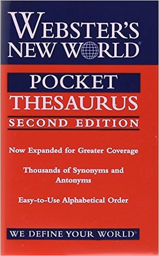 Webster's New World Pocket Thesaurus, 2nd edition Merriam Webster 79 Merriam-webster's intermediate dictionary Publisher: Merriam Webster; Reissue edition Webster's New Roget's Pocket Thesaurus Webster's New World Thesaurus Webster's Dictionary & Thesaurus for Students: With Full-Color World Atlas Webster's Thesaurus for Students, Third Edition Merriam-Webster's Dictionary and Thesaurus, Newest Edition (c) 2014 Webster's Dictionary & Thesaurus for Students, Second Edition Merriam-Webster's Intermediate Thesaurus, Newest Edition Webster's Thesaurus, Grades 4 - 8: Second Edition (Notebook Reference) Merriam-Webster's Pocket Spanish-English Dictionary (Flexible paperback) (Pocket Reference Library) Merriam-Webster's Pocket French-English Dictionary (Pocket Reference Library) Merriam-Webster's Pocket Guide to Business and Everyday Math (Pocket Reference Library) The Merriam-Webster Thesaurus Merriam-Webster's Dictionary and Thesaurus Webster's For Students Dictionary/Thesaurus Shrink-Wrapped Set Webster's Thesaurus for Students: Entries Are Alphabetically Arranged Easy-To-Use Thousands of Example Sentences Roget's 21st Century Thesaurus: Updated and Expanded 3rd Edition, in Dictionary Form (Roget's Twentieth-First Century Thesaurus in Dictionary Form) Webster's New World Pocket Spanish Dictionary Webster's New World Dictionary of Culinary Arts (2nd Edition)