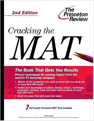 Cracking the MAT, 2nd Edition (Princeton Review: Cracking the MAT) Cracking the MAT (Miller Analogies Test), 1997 ed (Princeton Review Series) Princeton Review MCAT Subject Review Complete Box Set, 2nd Edition: 7 Complete Books + Access to 3 Full-Length Practice Tests MAT Secrets Study Guide: MAT Exam Review for the Miller Analogies Test MAT Flashcard Study System: MAT Exam Practice Questions & Review for the Miller Analogies Test MAT Practice Questions: MAT Practice Tests & Exam Review for the Miller Analogies Test MAT Flashcard Study System: MAT Exam Practice Questions & Review for the Miller Analogies Test (Cards) The Princeton Field Guide to Dinosaurs (Princeton Field Guides) The Princeton Field Guide to Prehistoric Mammals (Princeton Field Guides) Princeton Review MCAT Subject Review Complete Box Set: New for MCAT 2015 (Graduate School Test Preparation) McGraw-Hill Education MAT Miller Analogies Test, Third Edition (Mcgraw Hills Mat) MAT (REA) -- The Best Test Preparation for the Miller Analogy Test: 5th Edition (Miller Analogies Test (MAT) Preparation) MAT -- The Best Test Preparation for the Miller Analogies Test: 5th Edition (Miller Analogies Test (MAT) Preparation) Master the Mat 2001: Miller Analogies Test (Master the Mat: Miller Analogies Test, 8th ed) How to Prepare for the MAT: Miller Analogies Test (Barron's MAT) MAT -- The Best Test Preparation for the Miller Analogies Test (Miller Analogies Test (MAT) Preparation) How to Prepare for the Mat: Miller Analogies Test (Barron's How to Prepare for the MAT) Cracking the MAT, 3rd Edition (Graduate School Test Preparation) The Princeton Review Complete MCAT: New for MCAT 2015 (Graduate School Test Preparation) Princeton Review Anatomy and Physiology Coloring Books to Accompany Tortora's Principles of Anatomy and Physiology