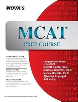 MCAT QBook: Over 2,000 Questions Covering Every MCAT Science Topic (More MCAT Practice) Kaplan MCAT General Chemistry Review: Created for MCAT 2015 (Kaplan Test Prep) Kaplan MCAT Complete 7-Book Subject Review: Created for MCAT 2015 (Kaplan Test Prep) Sterling Test Prep MCAT Physics Practice Questions: High Yield MCAT Physics Questions with Detailed Explanations Kaplan MCAT Biochemistry Review: Created for MCAT 2015 (Kaplan Test Prep) Sterling Test Prep MCAT Organic Chemistry & Biochemistry Practice Questions: High Yield MCAT Questions MCAT 528: Advanced Prep for Advanced Students (Kaplan Test Prep) Kaplan MCAT 528: Advanced Prep for Advanced Students (Kaplan Test Prep) GRE Math Prep Course (Nova's GRE Prep Course) LSAT KAPLAN COURSE TEST PREP (ENTIRE COURSE MATERIALS) (LSAT KAPLAN TEST PREP) MCAT Prep Course MCAT AudioLearn: Complete Audio Review for the MCAT (Medical College Admission Test) Kaplan MCAT 2007-2008 Premier Program (w/ CD-ROM) (Kaplan MCAT Premier Program (W/CD)) Barron's New MCAT with CD-ROM, 2nd Edition (Barron's Mcat) MCAT Chemistry and Physics: Strategy and Practice: Timed Practice for the Revised MCAT MCAT Psychology and Sociology: Strategy and Practice (MCAT Strategy and Practice) MCAT Psychology and Sociology Review: New for MCAT 2015 (Graduate School Test Preparation) MCAT Physics and Math Review: New for MCAT 2015 (Graduate School Test Preparation) MCAT Verbal Practice: 108 Passages for the New CARS Section (More MCAT Practice) MCAT Physics and Math: Content Review for the Revised MCAT