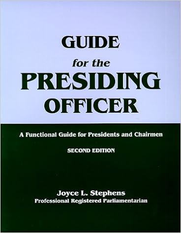 However... if you need help with an unruly or disorganized board, this book will NOT work for you. Joyce Stephens assumes that your board runs correctly and that you have such things as a parlimentarian on board. She even has a section on chosing the proper gavel. If your board lacks direction or does not function properly, this book will not help you run a successful meeting. But for newly elected presidents, this book can impart some very helpful information that should put anyone at ease right from the first board meeting.