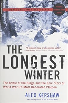 The Longest Winter: The Battle of the Bulge and the Epic Story of World War II's Most Decorated Platoon, Alex Kershaw's latest foray into the WWII genre, is a quick, straight-forward read that tells the inspiring story of the Intelligence and Reconnaissance (I&R) Platoon, 394th Infantry Regiment, 99th Infantry Division. This small unit of US GI's can fairly be credited with one of the most significant defensive actions associated with the Battle of the Bulge - Hitler's last gamble to turn the tide of war in the West. Kershaw spins a riveting yarn of the eighteeen young men who battled until killed (2 members) or captured (the remainder) at the small Belgian town of Lanzerath on 16 December 1944 against an overwhelming force (1st Battalion, Fallschirmjager Regiment 9 - temporarily assigned to 1st SS-Panzer Division).The Longest Winter is separated into three major parts: 1) training and pre-battle actions; 2) The Battle of Lanzerath itself; and 3) captivity, liberation and post-war accolades. While the second section is the main theme of the book and is written with flair, it is not particularly original. It was John S. D. Eisenhower who first detailed the Battle of Lanzerath in his 1969 The Bitter Woods. More recently the actions of the I&R/394th have been competently put to page by Stephen Ambrose (Citizen Soldiers, 1997) and Ronald Drez (25 Yards of War, 2001). In contrast, the first and third sections of The Longest Winter represent narratives of new information. Almost all of the actions associated with the I&R/394th are crafted entirely from interviews Kershaw conducted with surviving members of the platoon. While this provides an engaging narrative with a human feel, it lacks the historical clarity of thoroughly researched material.