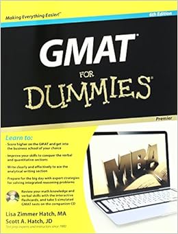 t's really a no-brainer that in order to get into the MBA of your choice you'll have to take the Graduate Management Admission Test (GMAT). The hardest part is probably working up to the test, thinking about how to study for it. The test is broad-based encompassing everything from your analytical skills to your quantitative. The test will take four hours, including a thirty-minute break and preparation is a must. If you break down the test you're looking at a thirty-minute analytical writing assessment, a thirty-minute integrated reasoning section (twelve questions), a seventy-five-minute quantitative section (thirty-seven questions), and a seventy-five-minute verbal section (forty-one questions). The first couple of chapters will give you a good idea of what you're in for and how to prepare.In this book you'll be able to take a look at the types of questions you'll be asked. Of course the more you practice, the easier it will be to get in the test mode that will be critical when you're actually taking the test. You'll also be able to look at a sampling of essays that would potentially work well for the analytical writing assessment. After the essays you'll get to read a discussion of said essay and how it "would likely score." Throughout the book you'll find little icons that will highlight additional information you'll need to pay attention to. They offer up tips, things you'll need to remember, examples, and offer up cautionary notes. For example, when your essay is scored the GMAT utilizes two separate readers. You need to "Remember" that "The benefit of having more than one reader evaluate your essay is that if one reader happens to assign you an unfairly low score, he won't be able to sabotage your score." Of course this is a highly unlikely scenario, but good to know.In the back of the book is an excellent index. If you are confident and proficient in one area, but lacking in another, a good index is invaluable. For example, if you aren't good at polynomials or need to know more about the parts of sentences, you can reference them easily. The included CD has "five full-length tests," both timed and untimed, and flashcards. Installation directions, including those for Mac, are in the appendix. The more you practice, the better off you are, especially if you are not a particularly good test taker. Many people aren't and these dummy books are invaluable. It's best to maximize your chances of getting into the MBA of your choice. There are several resources out there and if you have the time, nothing says you can't use more than one.Part I: Putting the GMAT into PerspectiveChapter 1: Getting the Lowdown on the GMAT 9Chapter 2: Maximizing Your Score on the GMATPart II: Vanquishing the Verbal SectionChapter 3: Applying What You Learned (We Hope) in Grammar Class: Sentence CorrectionChapter 4: Not as Enticing as a Bestseller: Reading ComprehensionChapter 5: Let's Think This Through Logically: Critical ReasoningChapter 6: Bringing It Together: A Mini Practice Verbal SectionPart III: Acing the Analytical Writing SectionChapter 7: Analyze This: What to Expect from the Analytical Writing Assessment (AWA)Chapter 8: Present Perfect Paragraphs: How to Write a GMAT EssayChapter 9: Deconstructing Sample GMAT EssaysPart IV: Conquering the Quantitative SectionChapter 10: Getting Back to Basics: Numbers and OperationsChapter 11: Considering All the Variables: AlgebraChapter 12: Getting the Angle on Geometry: Planes and SolidsChapter 13: Keeping in Step: Coordinate GeometryChapter 14: Manipulating Numbers: Statistics and SetsChapter 15: It's All in the Presentation: GMAT Quantitative Question TypesChapter 16: All Together Now: A Mini Practice Quantitative SectionPart V: Excelling on the Integrated Reasoning SectionChapter 17: Best of Both Worlds: The Integrated Reasoning SectionChapter 18: Deciphering Data in Charts and GraphsPart VI: Practice Makes PerfectChapter 19: GMAT Practice TestChapter 20: Practice Test Answers and ExplanationsPart VII: The Part of TensChapter 21: Ten Questions You've Got a Good Shot AtChapter 22: Ten Writing Errors to AvoidChapter 23: Ten Ways to Increase Your Chances of Getting into Business SchoolAppendix: About the CDIndex