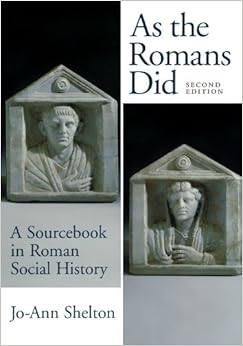 I must say this was an incredibly fun sourcebook to read. At times it had me laughing with humorous quotations such as; "I am amazed, o wall, that you have not collapsed and fallen, since you must bear the tedious stupidities of so many scrawlers" and at other times I would shudder; "Good God, what scrawny little slaves they were! Their skin was everywhere embroidered with purple welts from their many beatings. Their backs, scarred from floggings... their complexions were an ugly yellow..."Using a slew of both primary and secondary sources, Jo-Ann Shelton takes us through the life of the Romans. Covering topics as varied as slavery, provincial administration, the family unit, the magistrates and occupations, we are brought directly into Roman life with all of its practices, norms, values and peculiarities. The key feature of this book is the focus on the common Roman and how they lived with a section devoted entirely to woman in Roman society, a much overlooked topic. From dinner parties to funeral clubs, all aspects of the common Romans life are discussed.In all a very worthwhile book to own and use as both a source of reference and entertainment!
