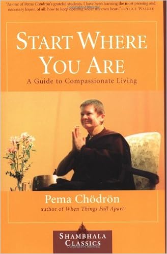 I highly recommend Start Where You Are for anyone who is serious about meditation practice and wants an earthy, no frills, no pretentions guide to compassionate living. Pema Chodron stresses that in order to act with compassion toward others, one must start with themselves, openning up that can of worms full of all the messy stuff that we would all rather not fess up to.At a very difficult time in my life, I just kept starting at the beginning every time I finished reading it. I felt as if I knew Pema Chodron personally by reading her books. And having read everything of Chogyam Trungpa's that I could find prior, I had a strong grasp of the foundation from which she learned, but that is certainly not a prerequisite to benefiting from her teachings.I would also strongly recommend her earlier book: The Wisdom of No Escape.