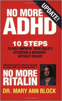 I recently saw Dr. Mary Ann Block on the CBS news program "48 Hours" and liked what she said about looking for the underlying causes of attention and behavior symptoms instead of giving risky drugs to cover the symptoms. So I got her book and I read it in one night. It was that good and that important. Dr. Block just plain makes sense and it was so exciting to finally get some practical information, I couldn't stop reading. I now understand all the possible factors that can be causing the ADHD symptoms and would never consider using drugs when there are so many safer and more reasonable options available. If anyone tells you that you or your child has ADHD, and you are fortunate enough to find this site and be reading this review, then, let me tell you, you have found the right book to read. It is No More ADHD by Dr. Mary Ann Block.