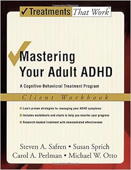 This workbook covers all the angles in the CBT of adult ADHD. It's useful in its structure and its content. While even manual based approached must be individualized, allowing the client to have all the homework assignments in one place and with full explanations is very valuable for the success of the outcome.
