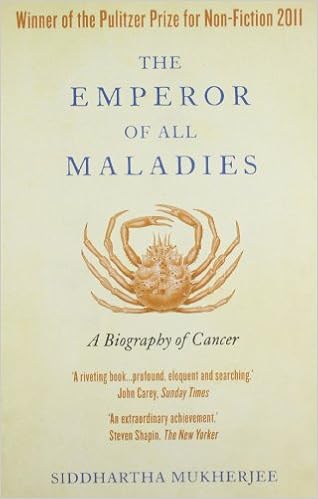 **I am pleased that Dr. Mukherjee has won the Pulitzer prize in general non fiction for this book, 4-18-11In the United States one in three women and one in two men will develop cancer in their lifetime. Dr Siddhartha Mukherjee, a medical oncologist, has written a definitive history of cancer. It may be one of the best medical books I have read. Complex but simple in terms of understanding. A timeline of a disease and those who waged the wars. In 1600 BC the first case of probable breast cancer was documented. In the thousands of years since, the Greek word, 'onkos', meaning mass or burden, has become the disease of our time. Cancer. The title of the book, is "a quote from a 19Th century physician" Dr Mukherjee had found inscribed in a library book that "cancer is the emperor of all maladies, the king of our terrors".As a health care professional and as a woman who is six years post breast cancer, Cancer has played a big part in my life. I used to walk by the Oncology clinic, and quicken my pace. I used to give chemotherapy to my patients, before it was discovered that the chemo was so toxic that it needed to be made under sterile conditions and given by professionals who specialized in Oncology. Dr Mukherjee, wisely discusses cancer in the context of patients, those of us who suffer. After all it is because of the patients, the people who have gone before us, who have contracted some form of cancer, they are the base of this science.Dr Mukherjee started his immersion in cancer medicine at the Dana Farber Cancer Institute in Boston. He relates the beginning of the study of ALL, Acute Lymphocytic Leukemia, by Dr Sidney Farber in 1947. Dr Farber, a pathologist at the time decided to change his focus and start caring for patients.