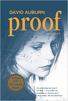David Auburn, Proof (Dramatists Play Service, 2001)I spent a good deal of my elementary and junior high school years reading plays, as I fancied myself an actor back in the day. A somewhat bad actor, to be sure, but I did manage to score the role of Reb Nahum in our fifth-grade production of Fiddler on the Roof. (Go me!) Acting in theater, however small, gave me a taste for reading plays, and it was quite enjoyable. Somewhere along the way, though, I tailed off, and it has only been recently (as in, in the past month) I've rediscovered the pleasure of reading a stage play. Proof is the second one I've encountered since starting again, and if the quality of these two is anything to go by, I've obviously been missing out on quite a bit in the quarter-century I haven't been keeping up.Proof is the story of a guy, a girl, and a mathematical equation. Which may not sound all that interesting when put that way, but it is. The girl is the daughter of a mathematical genius who suffered, while still young, a debilitating mental illness. (Think A Beautiful Mind without the paranoia and racism.) The guy is one of his doctoral students from the recent past, when he had a lucid year and briefly advised students at the local university again. The mathematical equation-- well, you'll just have to see, or read, the play.In a very short span of pages (seventy-four, to be precise), Auburn creates two compelling characters (and a few equally compelling minor players), puts them into a situation, and gives us enough to care about them in the most minimal fashion possible; while there's too much going on for the brevity of the play to really focus on the two of them, the reader still comes to understand much about their depth and various quirks.