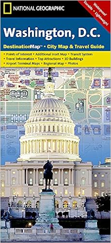 Looking for a good touristing map of Washington, D.C.? This National Geographic destination map might be it. The map is waterproof and durable enough to survive the average mishap with a soda or cup of coffee. One side shows downtown D.C. from Capitol Hill to Arlington National Cemetery in enough detail for a walking tour. The other side has a street index and inset maps of Old Town Alexandria, and Reagan Washington National Airport, Dulles International Airport. There is a diagram of the D.C. Metro system. There is also a inset map of the Washington Beltway as far out as I-495. Some touristing tips are included on this side. All in all, a decent map for the visitor, although you might advertise yourself by unfolding it for navigation. Recommended.
