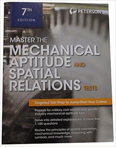 Master The Mechanical Aptitude and Spatial Relations Test (Mechanical Aptitude and Spatial Relations Tests) Barron's Mechanical Aptitude and Spatial Relations Test, 3rd Edition (Barron's Mechanical Aptitude & Spatial Relations Test) ARCO Mechanical Aptitude and Spatial Relations Tests Barron's Mechanical Aptitude and Spatial Relations Test Military Flight Aptitude Tests, 5/e (Peterson's Master the Military Flight Aptitude Tests) Master The Officer Candidate Tests: Targeted Test Prep to Jump-Start Your Career (Peterson's Master the Officer Candidate Tests) Spatial Light Modulators and Applications: Spatial Light Modulators for Applications in Coherent Communication, Adaptive Optics and Maskless Lithography LOGICAL REASONING (General Aptitude and Abilities Series) (Passbooks) (General Aptitude and Abilities Passbooks) McGraw-Hill's 500 Physical Chemistry Questions: Ace Your College Exams: 3 Reading Tests + 3 Writing Tests + 3 Mathematics Tests (McGraw-Hill's 500 Questions) Barron's Military Flight Aptitude Tests, 3rd Edition Military Flight Aptitude Tests (3rd ed) Principles And Practice of Mechanical Ventilation, Third Edition (Tobin, Principles and Practice of Mechanical Ventilation) Practice Problems for the Mechanical Engineering PE Exam, 13th Ed (Comprehensive Practice for the Mechanical Pe Exam) Master the Miller Analogies Test 2004 (Arco Master the Miller Analogies Test) Master the Miller Analogies Test 2002 (Arco Master the Miller Analogies Test) Master the Mat 2001: Miller Analogies Test (Master the Mat: Miller Analogies Test, 8th ed) Master the Miller Analogies Test 2006 (Arco Master the Miller Analogies Test) ASVAB Practice Test Review Book: 600+ Test Prep Questions for the ASVAB Exam; Math, Science, Electrical and Mechanical Comprehension and More Electrical Apprentice Aptitude Test(Passbooks) OAR Secrets Study Guide: OAR Exam Review for the Officer Aptitude Rating Test