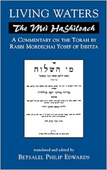 Bezalel Edwards has done a service to the entire Torah- loving- through - English - primarily world by translating the Mei Hashiloach into English. This is one of the great Hasidic commentaries on the Torah. Many are those who champion it and find in it the deepest of Torah insights. The Ishbitzer in some ways has a psychological acuity which seems to speak most strongly to those of the present generation. Of course Rav Shlomo Carlebach repeatedly learned from and taught Ishbitz. So too did one of his greatest pupils , the Holy Teacher David Hertzberg whose profound insights into the Ishbitz were part of the Torah given over in his own sefer ' Pri Mayim Chayim' Bezalel Edwards shows a good command of the text. One would like very much however to see this translation printed with the original text alongside, a dual- language volume. Perhaps some enterprising publisher in the world of Judaica could start bringing out such dual- language volumes. Another candidate for this would be the Ishbitzer's great teacher, the Kotzker.Somehow for certain readers anyway the dual- language works add a dimension to our learning which having the text in the language of translation alone does not.But again Yishar Koach to Bezalel Edwards on this excellent work.