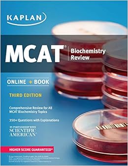 More people get into medical school with a Kaplan MCAT course than all major courses combined. Now the same results are available with MCAT Biochemistry Review. This book features thorough subject review, more questions than any competitor, and the highest-yield questions available. The commentary and instruction come directly from Kaplan MCAT experts and include targeted focus on the most-tested concepts.MCAT Biochemistry Review offers:UNPARALLELED MCAT KNOWLEDGE: The Kaplan MCAT team has spent years studying every MCAT-related document related available. In conjunction with our expert psychometricians, the Kaplan team is able to ensure the accuracy and realism of our practice materials.THOROUGH SUBJECT REVIEW: Written by top-rated, award-winning Kaplan instructors, all material has been vetted by editors with advanced science degrees and by a medical doctor.EXPANDED CONTENT THROUGHOUT: As the MCAT has continued to develop, this book has been updated continuously to match the AAMC’s guidelines precisely—no more worrying if your prep is comprehensive!“STAR RATINGS” FOR EVERY SUBJECT: New for the 3rd Edition of MCAT Biochemistry Review, every topic in every chapter is assigned a “star rating”—informed by Kaplan’s decades of MCAT experience and facts straight from the testmaker—of how important it will be to your score on the real exam.MORE PRACTICE THAN THE COMPETITION: With 350+ questions throughout the book and access to a full-length practice test online, MCAT Biochemistry Review has more practice than any other MCAT biochemistry book on the market.ONLINE COMPANION: One practice test and additional online resources help augment content studying. The MCAT is a computer-based test, so practicing in the same format as Test Day is key.TOP-QUALITY IMAGES: With full-color, 3-D illustrations, charts, graphs and diagrams from the pages of Scientific American, MCAT Biochemistry Review turns even the most intangible, complex science into easy-to-visualize concepts.KAPLAN'S MCAT REPUTATION: Kaplan is a leader in the MCAT prep market, and twice as many doctors prepared for the MCAT with Kaplan than with any other course.*UTILITY: Can be used alone or with the other companion books in Kaplan's MCAT Review series.* Doctors refers to US MDs who were licensed between 2001-2010 and used a fee-based course to prepare for the MCAT. The AlphaDetail, Inc. online study for Kaplan was conducted between Nov. 10 - Dec. 9, 2010 among 763 US licensed MDs, of whom 462 took the MCAT and used a fee-based course to prepare for it.