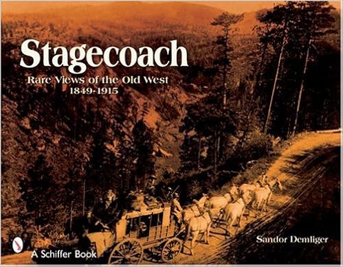 The image of the primitive, dust-covered stagecoach pounding across the Plains is one of the enduring images of the Old West. Photogarpher/collector Sandor Demlinger offers up over 280 vintage photographs of the stagecoach and life in the West in STAGECOACH, RARE VIEWS OF THE OLD WEST 1849-1915.After a beginning chapter on westward emigrant routes, Demlinger records the beginnings and steady development of stagecoach service in chapters covering events from 1849-1860, 1861-1871, 1872-1881, etc. The text is both factual and lively with various first-person reminiscences that recall those times.Hundreds of well-reproduced, nicely-captioned images depict various types of stagecoaches, waystations, towns, individuals, crowd scenes, hangings, railroads, western vistas, etc. Most of the images are photographs but also included are maps, diagrams, advertisements and artwork.Obviously a labor of love, STAGECOACH should prove to be catnip to fans of the old West. Those bygone days really come to life in this tremendously appealing 2005 Schiffer Publishing release. Recommended.