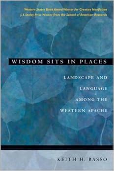 What do people make of places? This is the central question examined by Keith Basso in his ethno-linguistic study of the relationship between language and landscape among the Apaches of Cibecue, on the Fort Apache Reservation in central Arizona. Basso, a professor of Anthropology at the University of New Mexico, has spent over 30 years conducting field work among the Western Apaches. His publications concerning this group include articles on language, patterns of silence in social interaction, witchcraft beliefs, and ceremonial symbolism, among others. The idea for Wisdom Sits in Places stemmed from a study conducted between 1979 and 1984, in which Basso, with the help of a grant from the National Science Foundation and the guidance of the Apaches, conducted a study of Apache places and place-names; how the Apache refer to their land, the stories behind the place-names, and how these place-names are used in daily conversation by Apache men and women. The result is a stunningly informative account of the use of landscape and language in the social interactions of the Western Apaches.Basso divides his book into four sections: Quoting the Ancestors, Stalking with Stories, Speaking with Names, and Wisdom Sits in Places. Each chapter's focus is to examine how landscape and language serve distinct purposes in Western Apache society. Basso incorporates the oral history of, and discussions with, local Apaches, as well as his formal training as an ethnographer-linguist, to explain the underlying themes of this book.First, Basso introduces the reader to the idea of place-names and in the Western Apache construction of history.