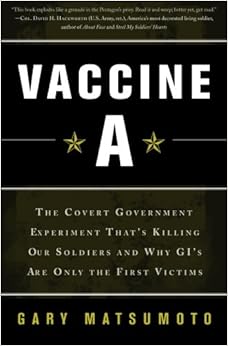 This book is frightening if true. The premise, set forth in the introduction and detailed in the book, is that the US government has used experimental vaccines from the Desert Shield / Storm era through today on GI's and other individuals. Author Gary Matsumoto methodically - sometimes excruciatingly so - grinds through facts and builds a circumstantial case supported by nearly 60 pages of endnotes.Matsumoto was the first writer to publish a connection between the anthrax vaccine and the Gulf War Syndrome, doing so in an article published in Vanity Fair in 1999. His book, Vaccine A, is the spawn of that article.Matsumoto does not have an evident bias of distrust in the US government or even the military. He acknowledges the need to develop and use a vaccine effective against anthrax. He is even willing to understand the failure to obtain knowing consent from those injected with an unlicensed vaccine due to the exigent nature of the Gulf conflict and the fear of biological agents in the possession of Saddam Hussein - at least initially.As his investigation progresses, Matsumoto learns that one of the ingredients of Vaccine A (anthrax vaccine) is squalene. This oily substance is an adjuvant that stimulates the immune system. Unfortunately, this oil too closely resembles oils found in the body and as a result, the body's immune system begins to attack itself. This causes a plethora of autoimmune diseases.Disturbingly, it appears that a wealth of scientific knowledge about the dangers of squalene was available to a thorough researcher prior to the Gulf War. Even more disturbing is the unwillingness of the US military to acknowledge more than ten years later the fact that squalene in Vaccine A caused a large number of "casualties".