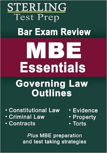 Sterling Bar Exam Review MBE Essentials: Governing Law Outlines (Sterling Test Prep) Rigos Primer Series Uniform Bar Exam (UBE) Review Multistate Bar Exam (MBE) Volume 1: 2017 Edition Rigos Primer Series Uniform Bar Exam (UBE) Multistate Bar Exam (MBE) Volume 2: 2017 Edition The Bar Exam Mind Bar Exam Journal: Guided Writing Exercises to Help You Pass the Bar Exam Mastering Multiple Choice for Federal Civil Procedure MBE Bar Prep and 1L Exam Prep, 2d (Career Guides) Scoring High on Bar Exam Essays: In-Depth Strategies and Essay-Writing That Bar Review Courses Don't Offer, with 80 Actual State Bar Exams Questions a Passing the Uniform Bar Exam: Outlines and Cases to Help You Pass the Bar in New York and Twenty-Three Other States (Professional Examination Success Guides) (Volume 1) HOW TO WRITE A LAW SCHOOL IRAC ESSAY and Pass: Authored By A Bar Exam Expert Whose Bar Exam Essays Were Published! Look Inside!!! Civil Procedure MBE Practice Questions: Simulated MBE Practice Questions Testing Civil Procedure with Answers and Explanations Strategies & Tactics for the MBE, Fifth Edition (Emanuel Bar Review) Strategies & Tactics for the MBE 2, Second Edition (Emanuel Bar Review Series) Strategies & Tactics for the MBE (Emanuel Bar Review) PMBR MBE Multistate Bar Exam Practice & Strategies Strategies & Tactics for the MBE (Multistate Bar Exam) California POST Exam Study Guide: Test Prep for California Police Officer Exam (Post Entry-Level Law Enforcement Test Battery (PELLETB)) Sterling Test Prep SAT U.S. History: SAT Subject Test Complete Content Review How to Open a Bar: An Entrepreneur's Essential Guide to Opening, Operating, and Owning a Bar or Nightclub ~ ( the Bar Business Plan ) Strategies & Tactics for the FINZ Multistate Method (Emmanuel Bar Review) (Emanuel Bar Review) Bar Exam Basics: A Roadmap for Bar Exam Success How to Write Bar Exam Essays: Strategies and Tactics to Help You Pass the Bar Exam (Volume 2)