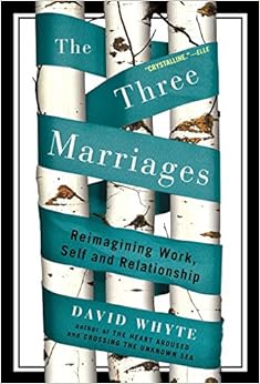 David posits that we have three very important marriages in our lives: marriage to a partner, our marriage to our work, and that ultimate marriage we should be having with ourselves. He says these things are so closely tied to who we are, that we must look at all three. (probably OFTEN.) He also says we can't expect a perfect balance, and explains why that just doesn't work in the real world. (what a relief!)I downloaded the audio version and listened to it twice. He addressed so many important areas, using wonderful stories and poems, that finally, after listening to it twice, I ordered a copy of the book so I could highlight all the good stuff I wanted to remember. I'm a happy camper.
